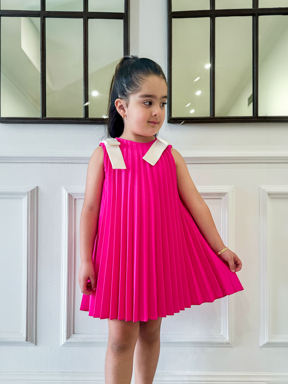 Bow Pleated Dress – Pink