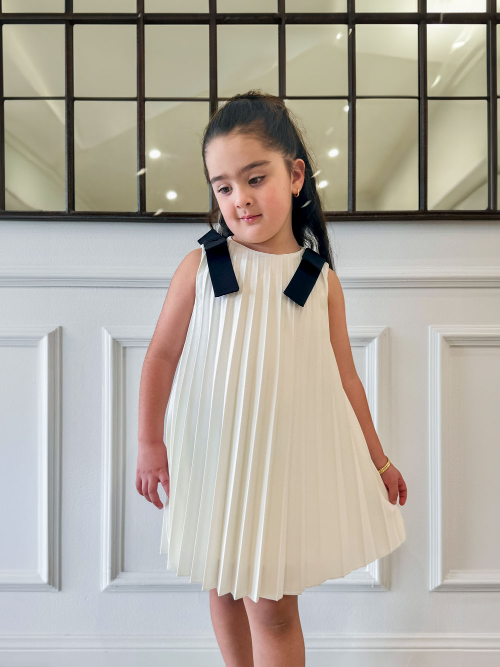 This dress is one of a unique pleated dress that has 2 bows on the shoulder . It comes in 3 different colours.